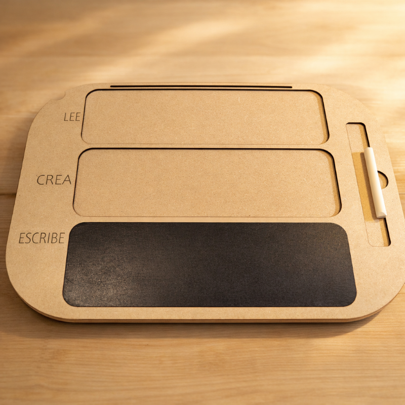 ¡Aprende y diviértete jugando con las tablas de lectura y escritura hechas a mano en nuestro taller! Nuestros materiales son atractivos y fáciles de manipular, lo que ayuda a los niños a adquirir habilidades de lectura y escritura de manera divertida y natural.